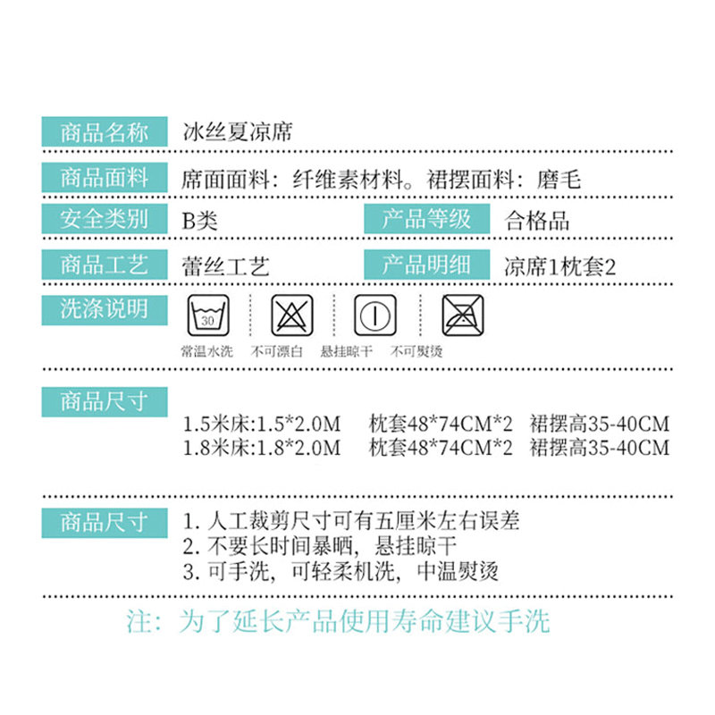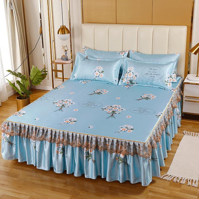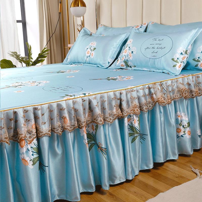 印花蕾丝床裙款冰丝席凉席三件套【冰丝(聚酯纤维)/朵菲雅-兰】 |