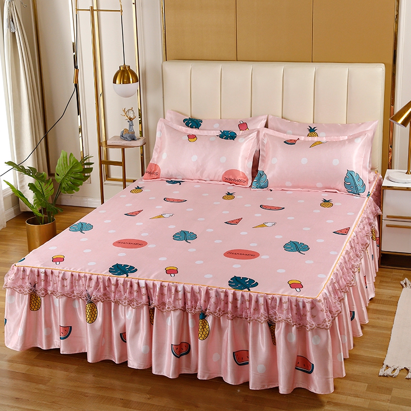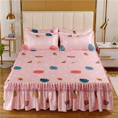 印花蕾丝床裙款冰丝席凉席三件套【冰丝(聚酯纤维)/甜蜜夏日】 |