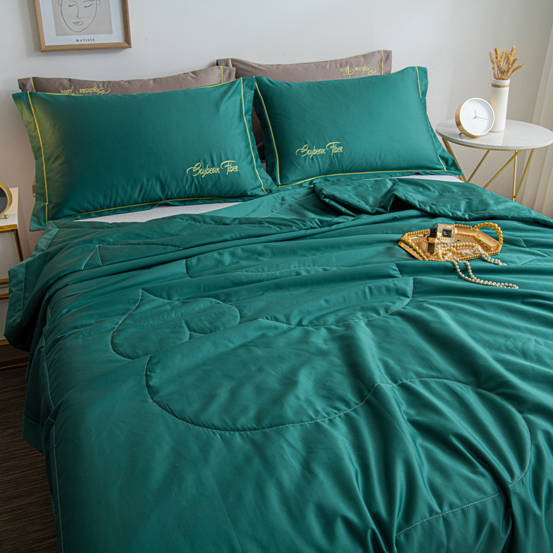 纯色刺绣水洗冰丝大豆纤维夏被【水洗冰丝(聚酯纤维)填充大豆纤维/诱惑绿】 |