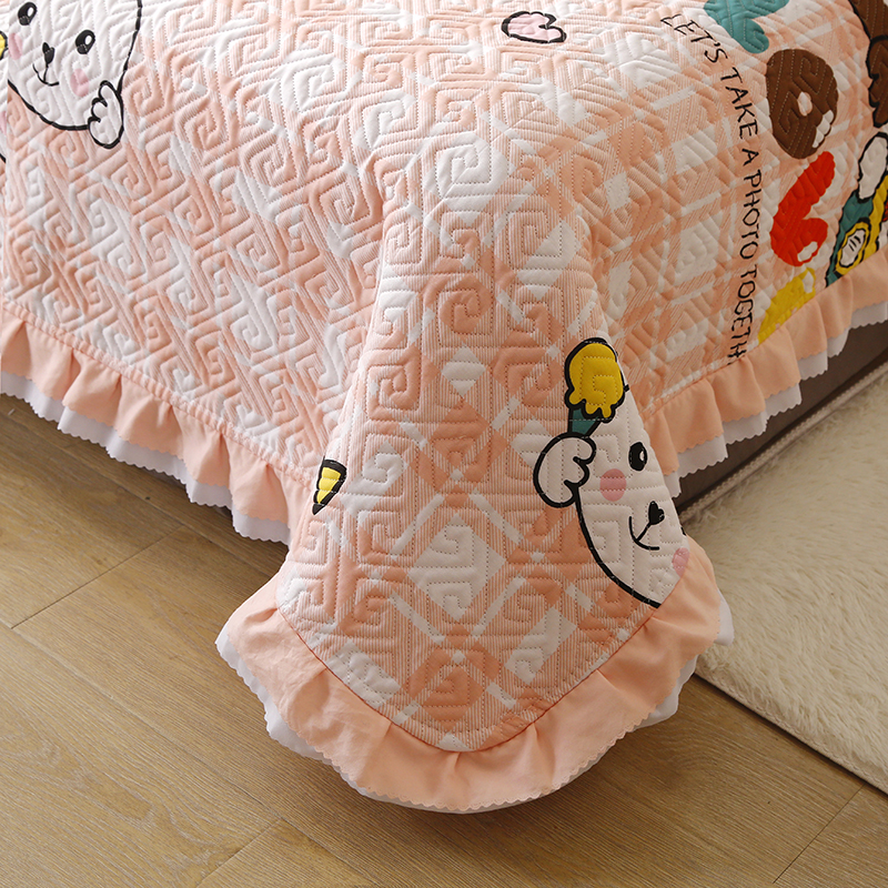 【三层复合】全棉夹棉绗缝床盖三件套【全棉/喵小琪-粉】 |