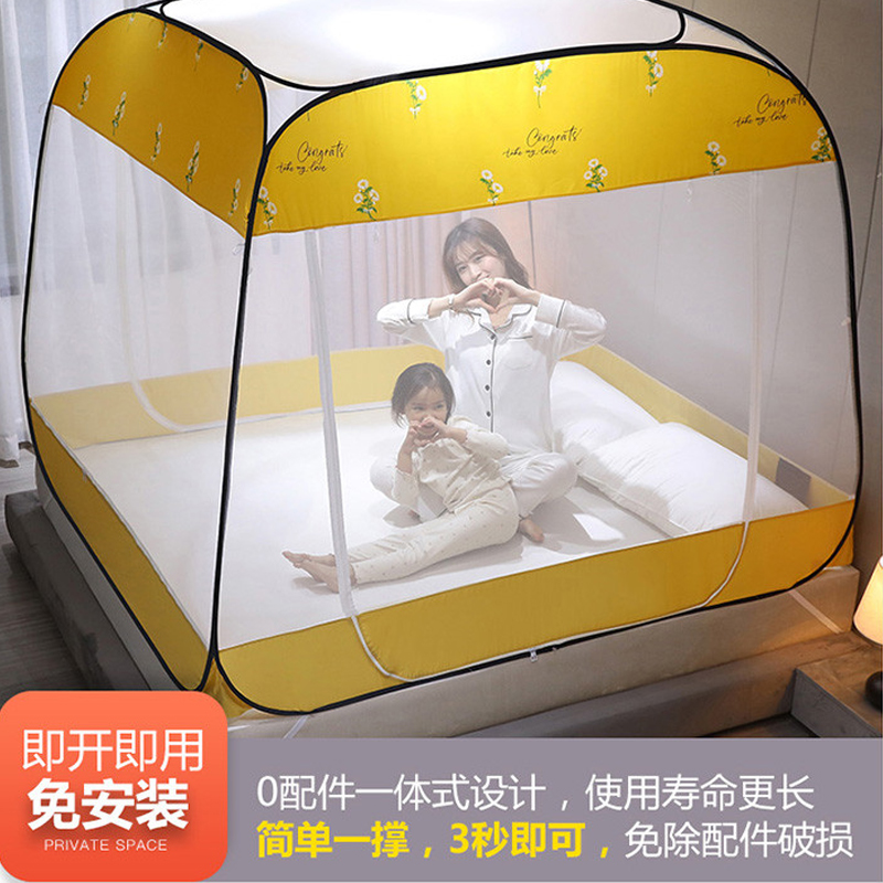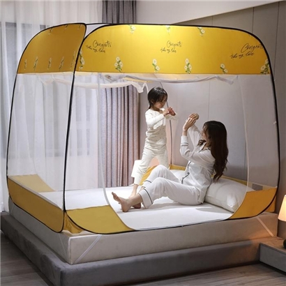 大顶部印花款免安装蚊帐【面料聚酯纤维支架包塑钢丝/小雏菊嫩黄】 |