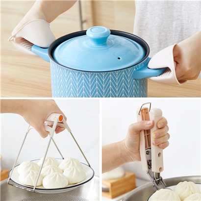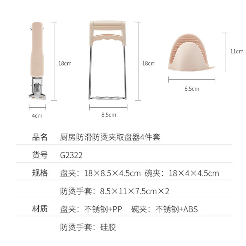 厨房防滑防烫夹取盘器4件套【盘夹:不锈钢+PP 碗夹:不锈钢+ABS 防烫手套:硅胶/图片色】 |