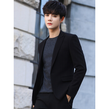 西服男2020新款男士休闲西装潮流帅气商务小西装男韩版修身青年春秋季外套男单西纯色上衣套装 黑色单西 XL |