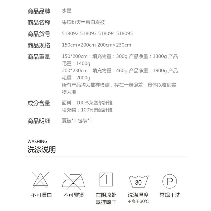 天丝蛋白夏被(夏被*1)【面料:100%莱赛尔纤维/果缤纷天丝蛋白夏被(菠萝)】 |