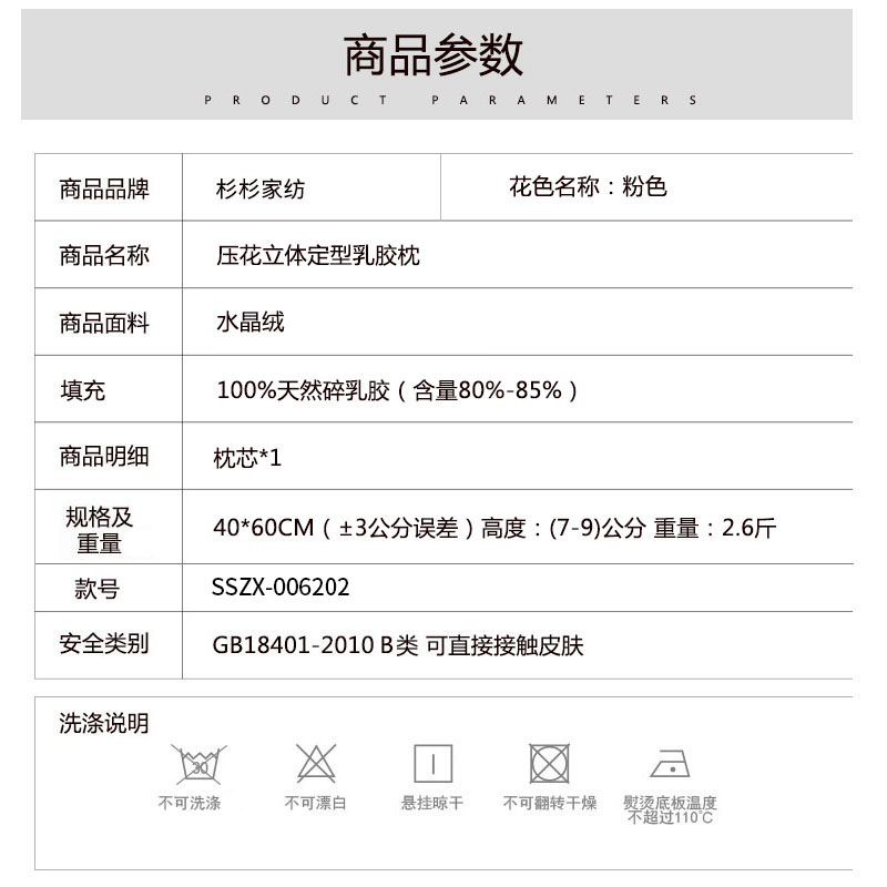 压花立体定型乳胶枕【面料:水晶绒填充:100%天然碎乳胶乳胶含量:80-85%/粉色】 |
