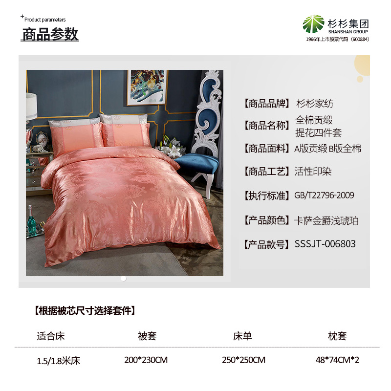 全棉贡缎提花四件套【全棉/卡萨金爵(浅琥珀)】 |