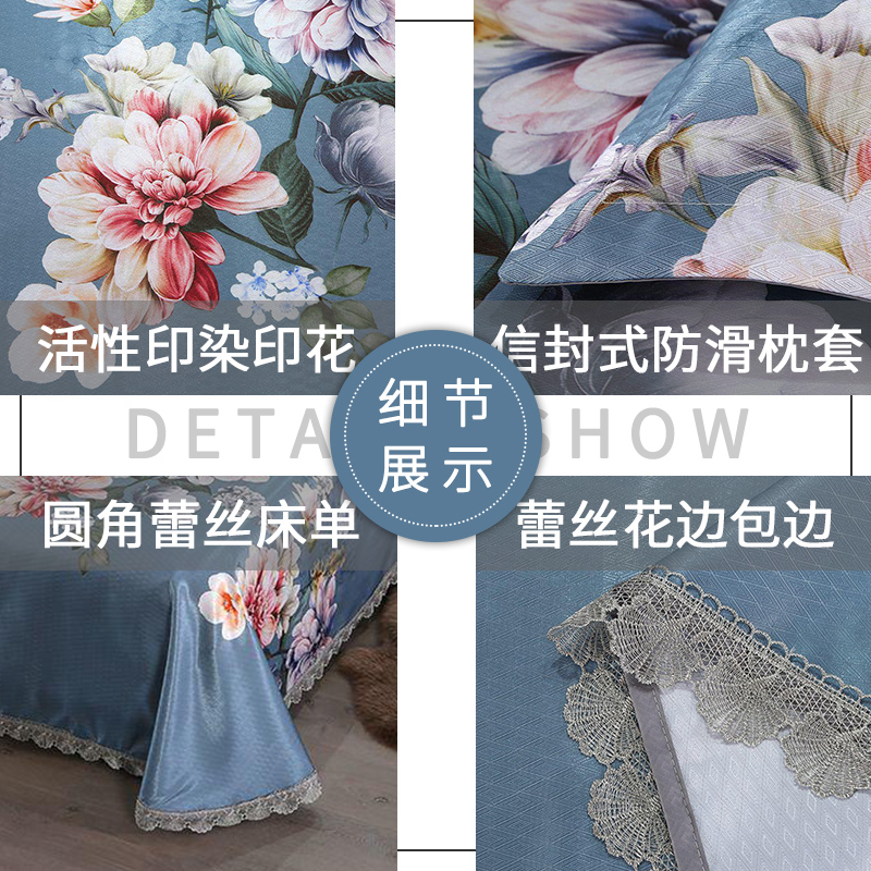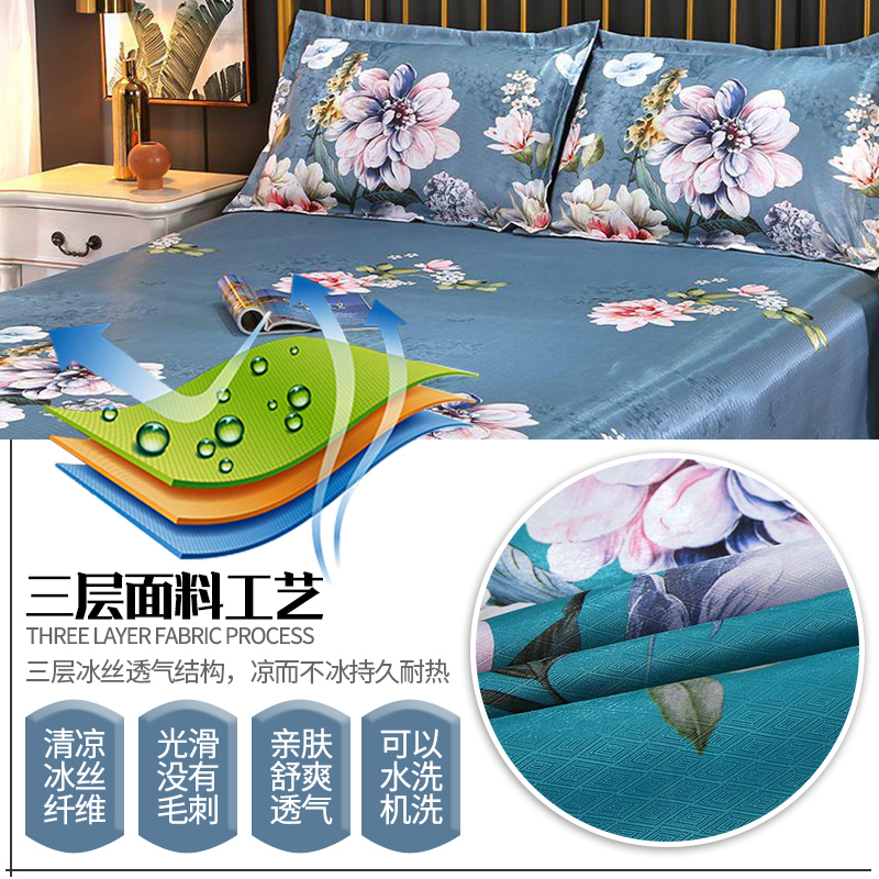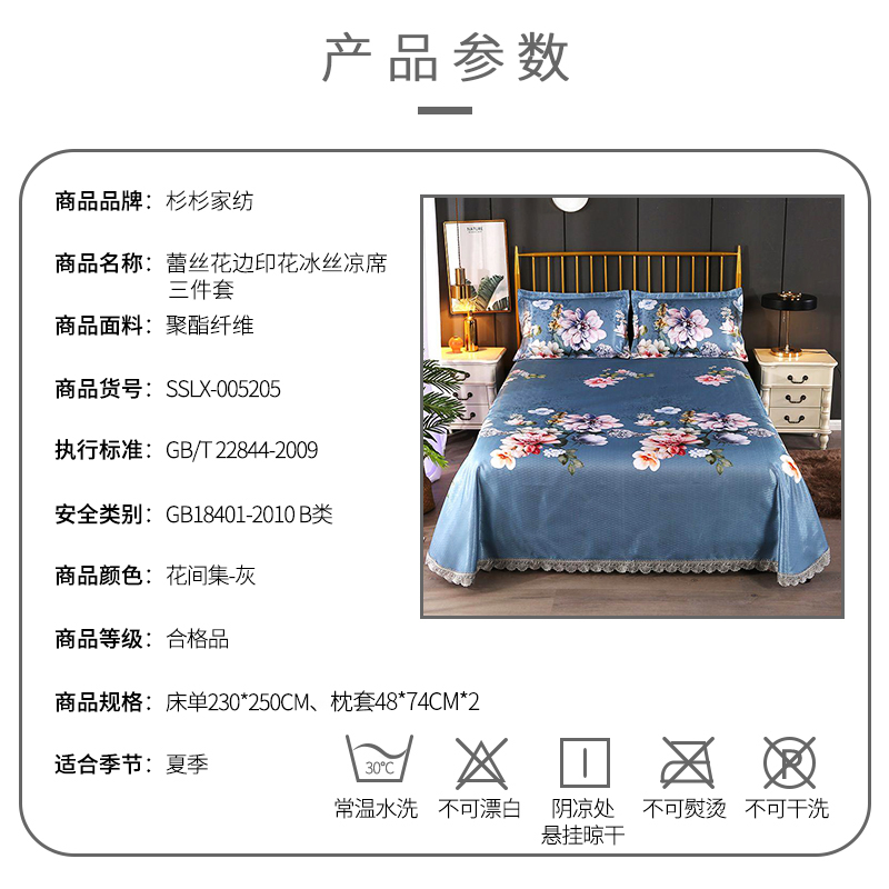 蕾丝花边印花冰丝凉席三件套【聚酯纤维/花间集-灰】 |
