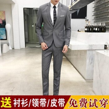 卡豪朗西服套装男2020四季新款商务休闲西装男韩版潮流职业正装小西装套装男绅士伴郎服新郎服结婚礼服 黑色(两件套) L |