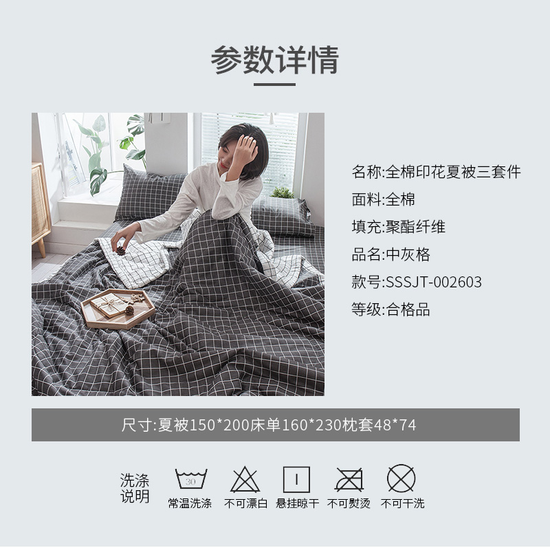 13070全棉夏被三件套【面料:纯棉填充:聚酯纤维/中灰格】 |