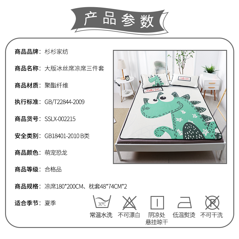 大版冰丝席凉席三件套【聚酯纤维/萌宠恐龙】 |