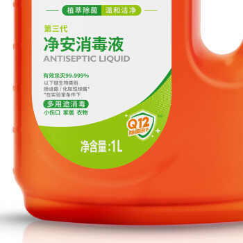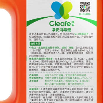 净安(Cleafe)复合季铵盐多用途消毒液1L杀菌率99.999%用于家居衣物小伤口消毒味道不刺鼻 |