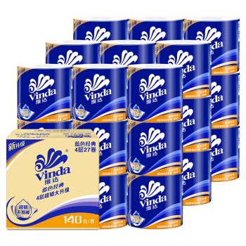 维达(Vinda) 卷纸 蓝色经典4层140g卫生纸巾*27卷(整箱销售) |