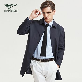 七匹狼风衣 男士春秋季商务休闲外套翻领薄款中长款夹克中青年长袖男装 101(藏青) 175/XL |