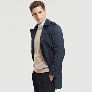 七匹狼男士休闲风衣 中长款男装2020年春季新品净色复合面料单排扣翻驳领外套 701(卡其) 180/2XL |