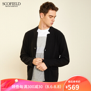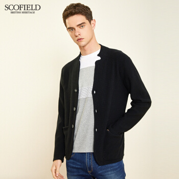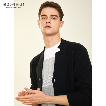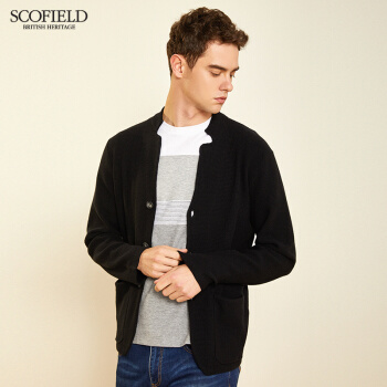 【商场同款】SCOFOIELD2020春季新款纯色开衫毛衣潮流时尚口袋简约男士针织衫外套男 黑色 180 |