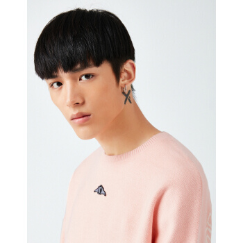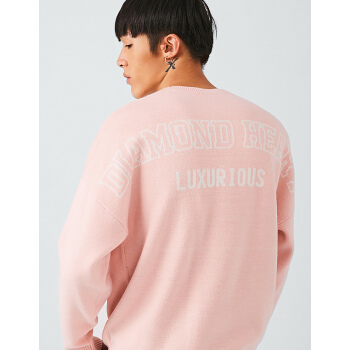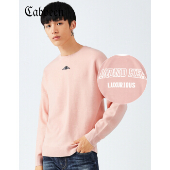 卡宾男装个性字母青年圆领长袖休闲针织衫时尚街头宽松毛衣秋款H 粉红色04 48/170/M |
