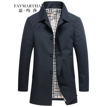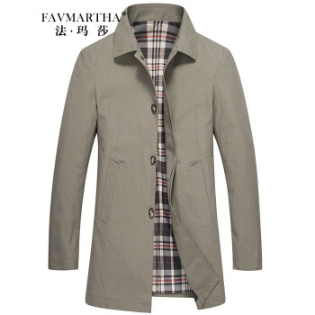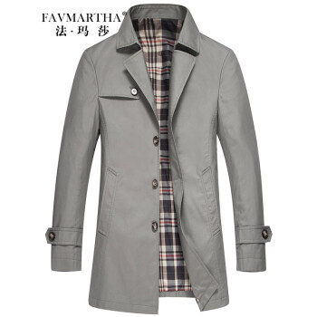法玛莎品牌中长款风衣男2020秋你新款商务休闲爸爸修身格子外套 浅灰6627 170/M |