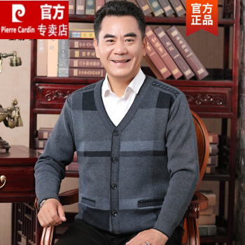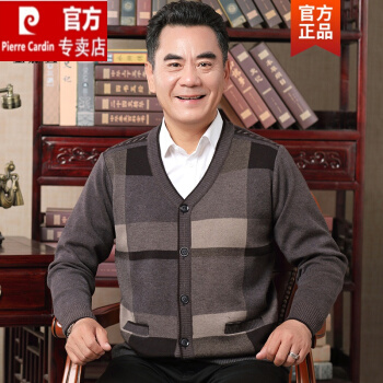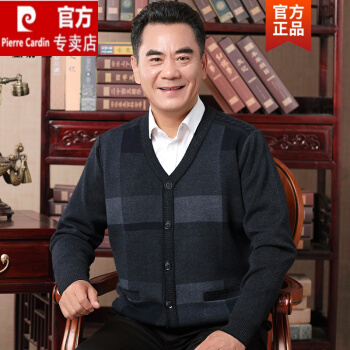 皮尔卡丹旗舰官方店 中年爸爸秋装打底衫秋春款毛衣开衫外套中针织外穿羊绒羊毛衫针织 酒红 185/XXXL |