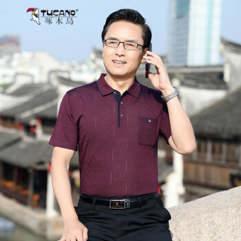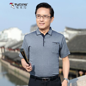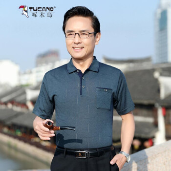 啄木鸟(TUCANO)短袖T恤衫男针织衫上衣中年人男士薄款小衫中老年爸爸装翻领POLO衫夏装新款半袖 绿色 170 |