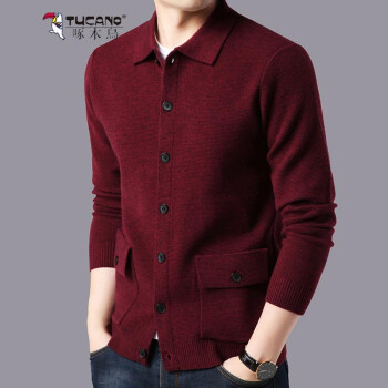 啄木鸟中年男士针织衫薄款上衣春秋新款毛衣开衫时尚青年男装翻领打底衫爸爸装冬装纯色加绒加厚毛线衣外套 灰色 175/115 |