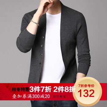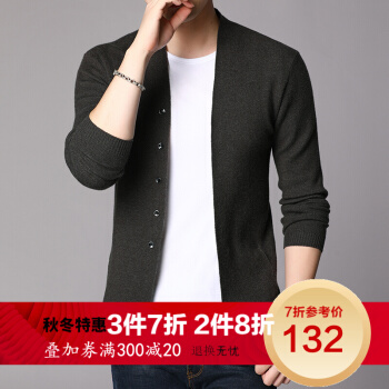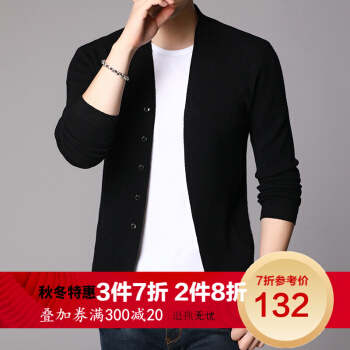 富贵鸟春秋男士针织衫开衫休闲V领薄款毛衣中年韩版修身打底外套男父亲节衣服 黑色 170/M |