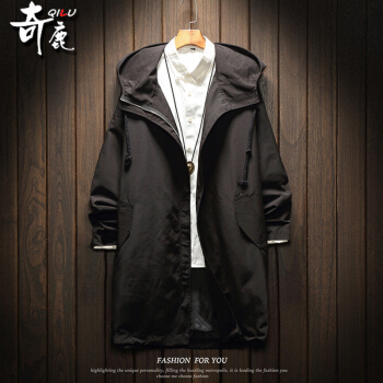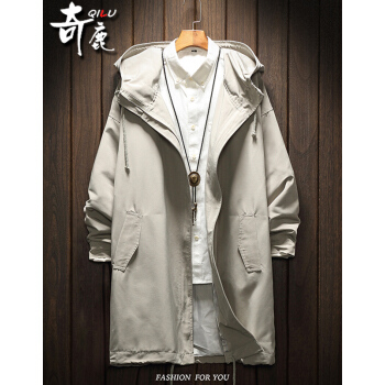 奇鹿 春秋新款连帽工装风衣男中长款夹克男复古街头宽松冲锋衣帅气大衣韩版潮流大码加厚夹棉多口袋青年外套 卡其色(不夹棉) XL(适合145-165斤) |