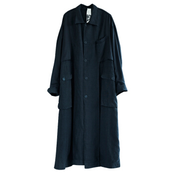 野无风衣男原创设计男装2020秋季新款男士纯色翻领多口袋后背交叉设计长款风衣男潮 粗粝黑 S |