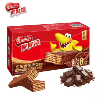 雀巢(Nestle) 脆脆鲨 休闲零食 威化饼干 巧克力口味640g(24*20g+赠8*20g) |