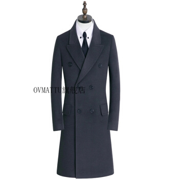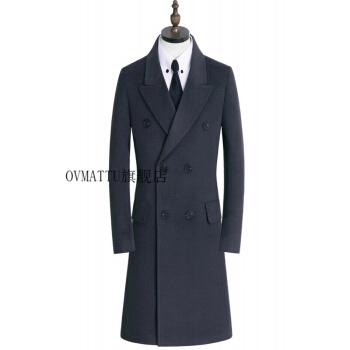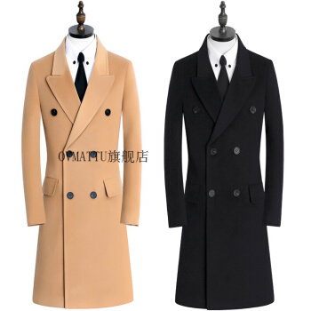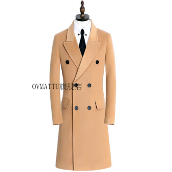 GORANKADI香港潮牌 新品男士秋冬英伦时尚保暖羊毛羊绒双排扣长款外套修身大衣厚风衣 驼色 5XL |