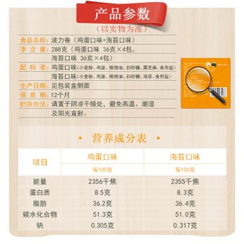 波力海苔 波力卷 鸡蛋海苔味蛋卷 休闲零食 早餐饼干288克 |