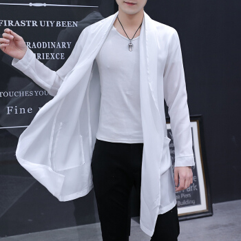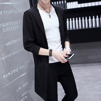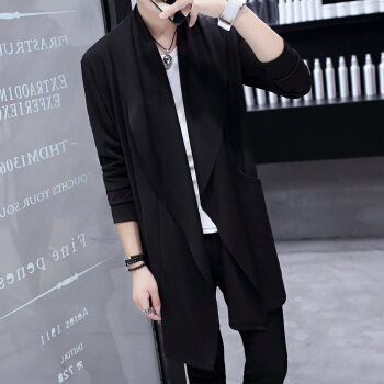 春夏季新款外套男中长款风衣薄款防晒披风男士帅气韩版修身大衣潮 M19黑色 175/XL |