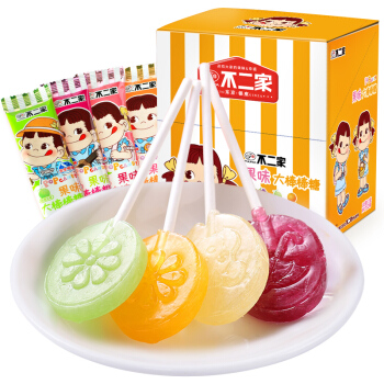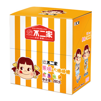 不二家 果味混合大棒棒糖 蜜桃味+葡萄味+哈密瓜味+香橙味 糖果儿童零食 (约28支)280g/盒 |