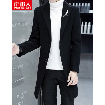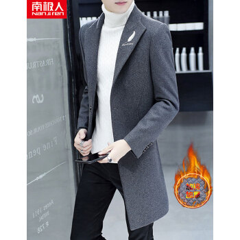 南极人风衣男中长款韩版修身帅气2019秋冬新款男士羊毛大衣秋款外套 868/灰色 175/XL |