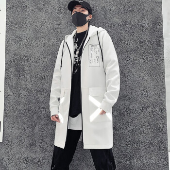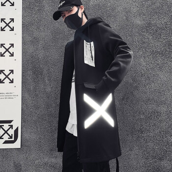 巴克龙秋冬新款连帽风衣男中长款韩版宽松港仔文艺男港风工装风衣青少年学生反光条外套加肥大码青年原创设计 黑色 M |