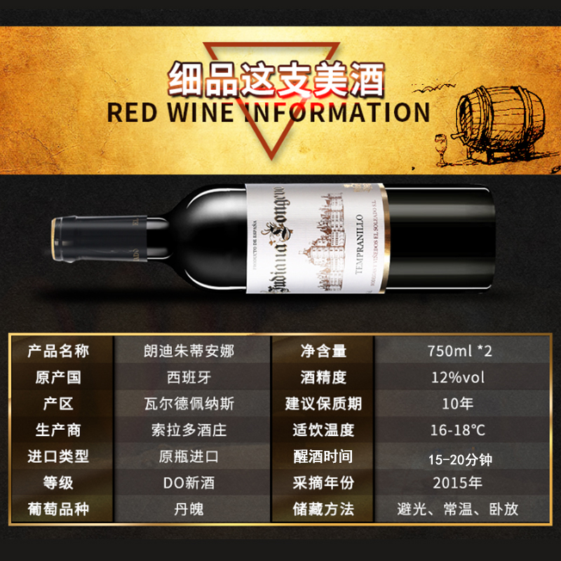 西班牙原瓶进口朗迪朱蒂安娜干红葡萄酒 |