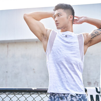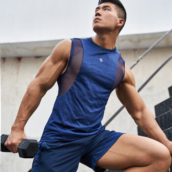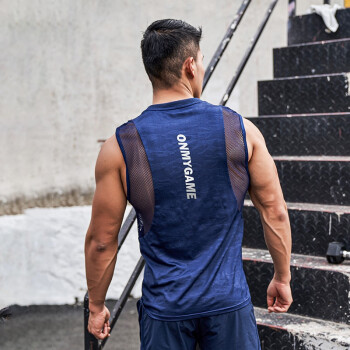 OMG潮流 网纱背心男速干衣运动跑步服紧身健身训练篮球服坎肩 蓝色 L |
