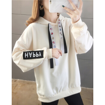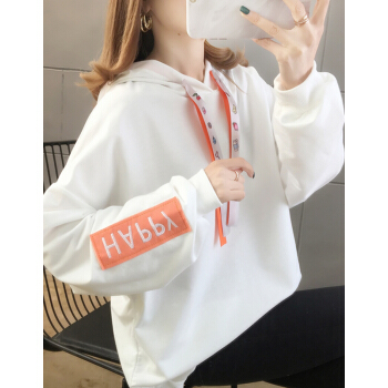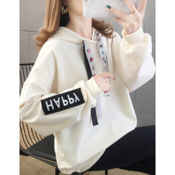 婪澈卫衣女2020秋季女装新款韩版宽松上衣春秋装贴布刺绣薄款长袖外套女休闲运动装女 杏色 L |