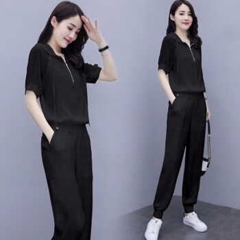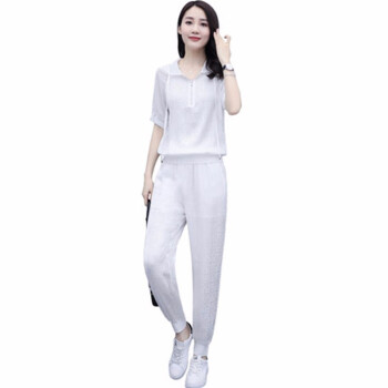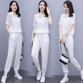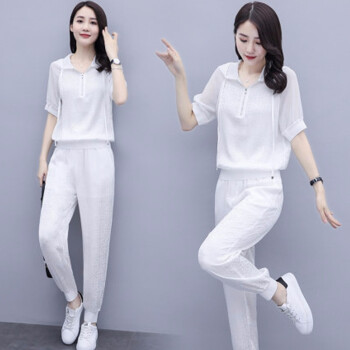 卿依瑟 卫衣套装女2020夏装新款减龄百搭薄款显瘦抽绳连帽纯色上衣卫衣女宽松大码九分裤两件套女潮 白色 M |