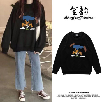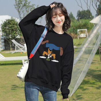 笙韵卫衣女学生2020秋冬季新款薄款长袖t恤韩版宽松怪味少女显瘦大码女装外套潮闺蜜装班服定制 黑色薄款 M(建议95-110斤内) |