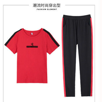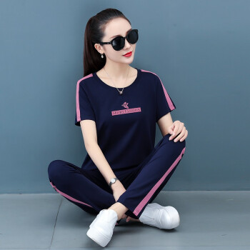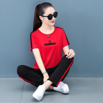 梓龄 运动套装女休闲裤女2020夏季新款圆领卫衣女T恤短袖长裤宽松显瘦洋气大码女装休闲套装女两件套 豆沙色 此码勿拍,请拍对应尺码 |