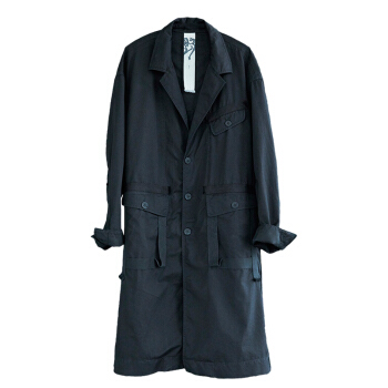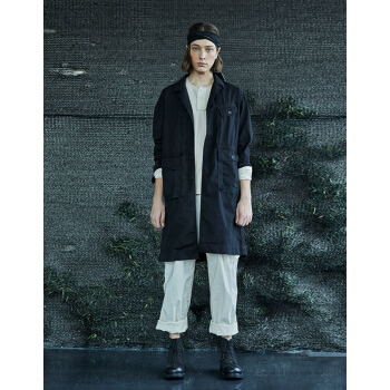 野无风衣男原创设计男装2020秋季新款男士工装翻领长款黑色风衣外套男 粗粝黑 M |