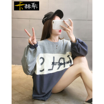 卡赫希卫衣女2020春秋季新款慵懒风百搭休闲学生上衣女时尚宽松圆领长袖拼接中长款女卫衣5006 灰色 请拍正确尺码 |