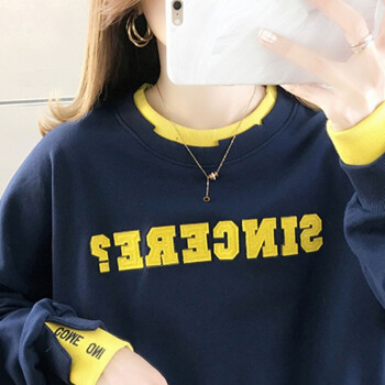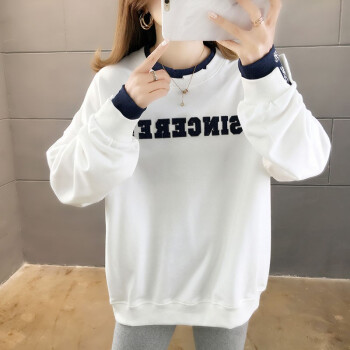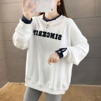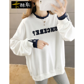 卡赫希卫衣女2020春秋季新款韩版宽松显瘦假两件女卫衣时尚百搭休闲ins潮学生上衣女5004 白色 请拍正确尺码 |
