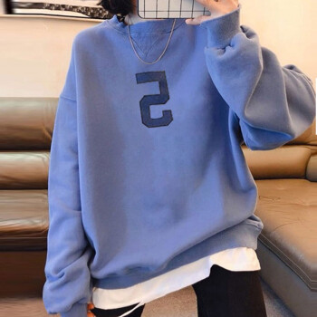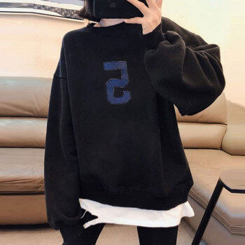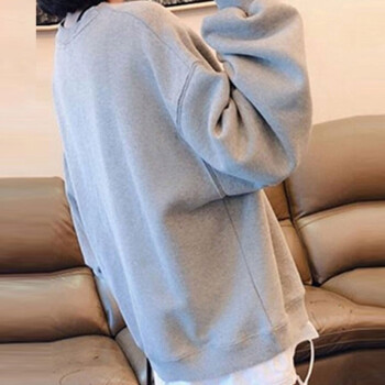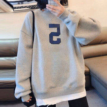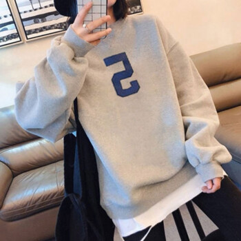 萱蓝卫衣女宽松纯棉2020秋季新款原宿风减龄拼接长袖女装上衣中长款百搭外套潮2326 灰色 XL |