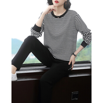 【精选好货】韩可思妈妈运动套装女洋气春秋装条纹休闲2020新款韩版气质四十岁宽松百搭中年长袖两件套 黑色上衣 请拍准确尺码或咨询客服 |