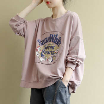 卫衣女宽松韩版学生文艺长袖2020秋冬季加绒休闲印花圆领套头上衣外套 粉紫色 XL110-125斤 |