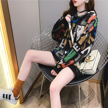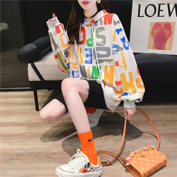 小赖猴连帽长袖卫衣女2020初秋新款休闲宽松韩版慵懒风百搭上衣外套港风 白色 均码 |