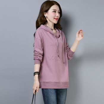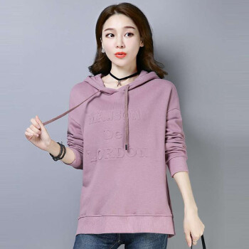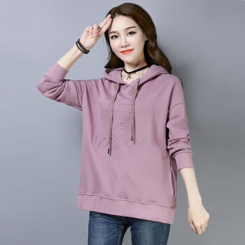 纤丝鸟 TINSINO 卫衣女2020秋季新款韩版慵懒风时尚连帽卫衣女宽松休闲ins百搭套头上衣 浅紫色 请拍正确尺码 |
