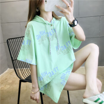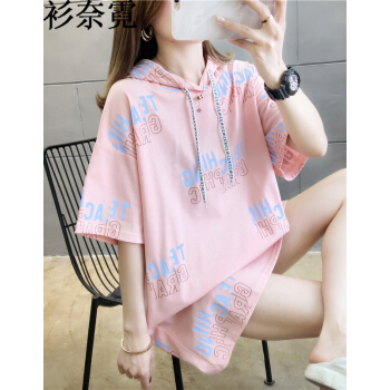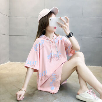 衫奈霓 超火cec网红中长款连帽卫衣女短袖t恤夏季新款宽松慵懒风学生上衣卫衣外套女 粉红色 M【建议95斤-105斤】 |