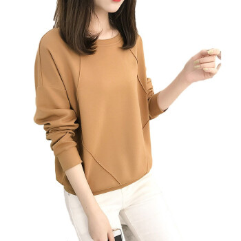 佰可衣2020新款圆领卫衣女春秋韩版宽松套头打底上衣女潮流 A字母驼色 M |
